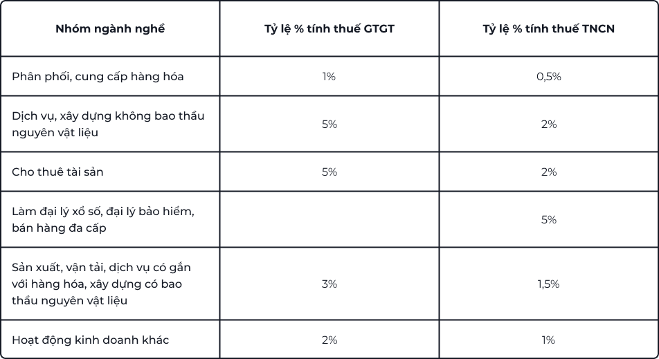 - Nếu hoạt động thuộc diện không chịu thuế GTGT hoặc thuế suất 0%, thì GTGT không áp dụng, nhưng TNCN vẫn tính theo tỷ lệ tương ứng nếu có phát sinh doanh thu.